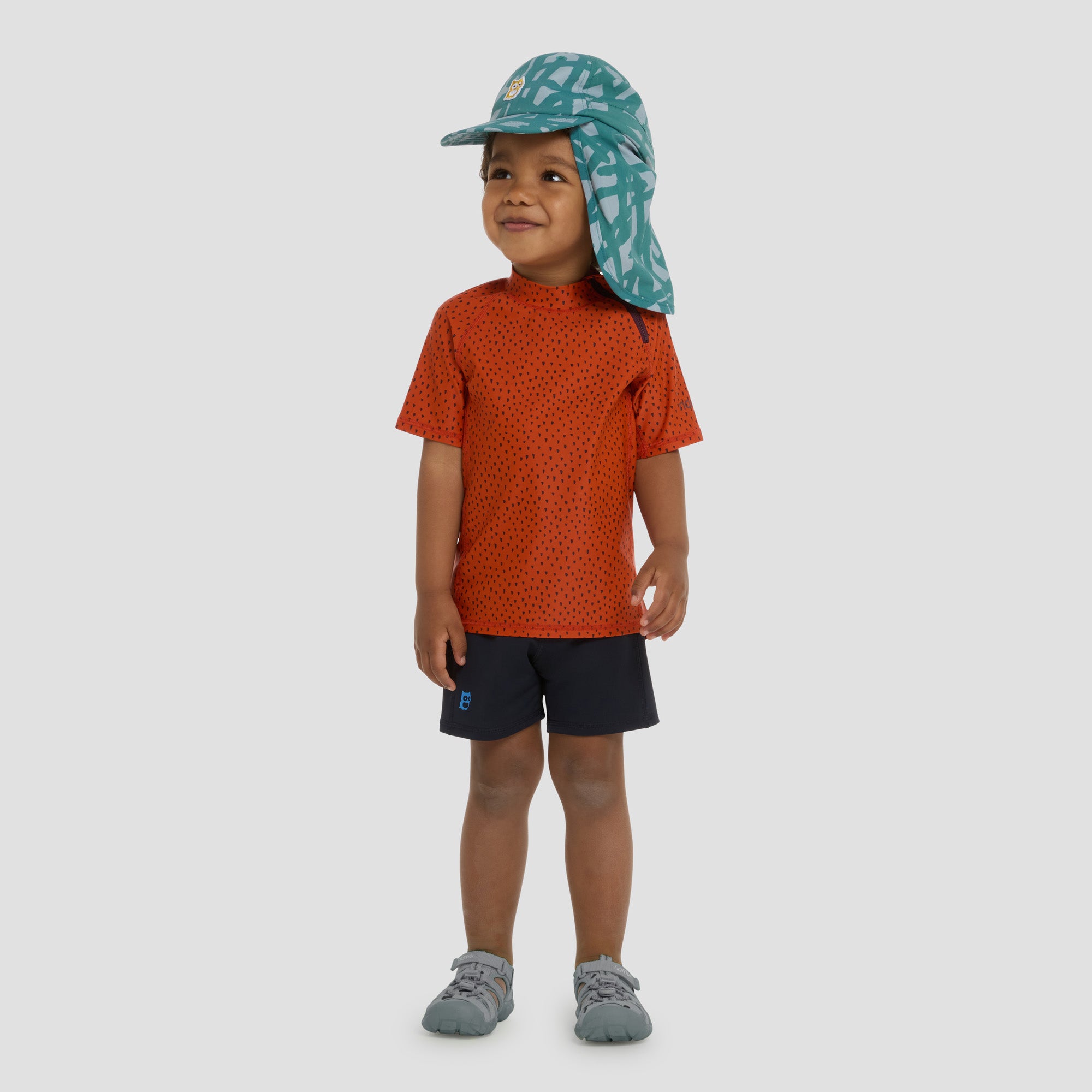 Every parent knows what a nerve-wracking operation it is to constantly apply sunscreen at the pool or beach. But with the Fin rashguard, we make a hot day a lot more chill: We’ve added an invisible feature to this product: UV Protection Factor 50+*. Invisible? Sounds like a superpower (and it truly is), because with UPF 50+, this snazzy shirt perfectly protects children’s delicate skin from the sun – especially those exposed shoulders.
