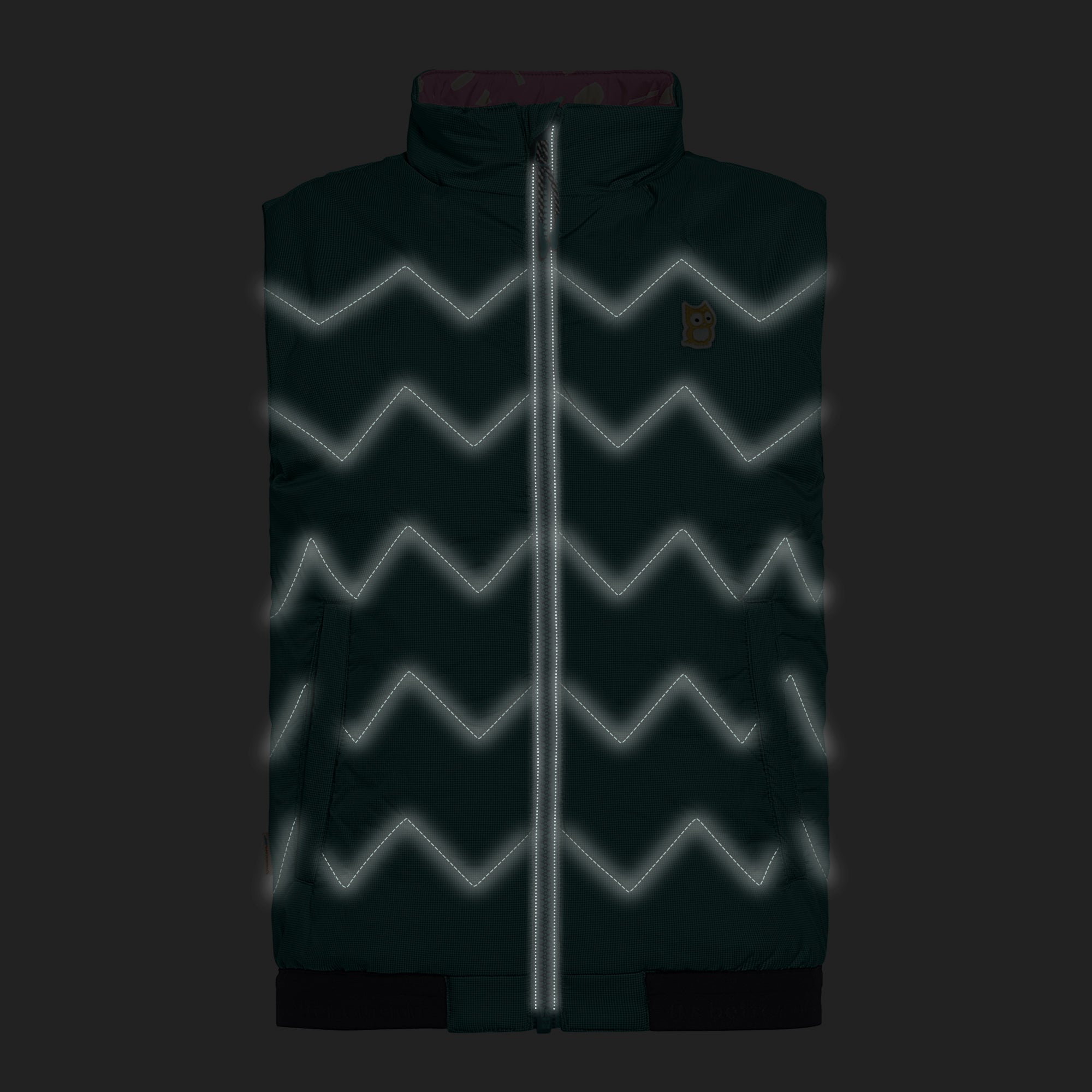 When reversed, large pockets are available to collect and store all kinds of things. Turned inside out again, all the treasures disappear from prying eyes. With a small cord and an integrated secret compartment, even the smallest and most valuable objects stay in their place. No matter which side you wear it on: The vest’s soft and biodegradable* Primaloft® Bio™ insulation made with 100% recycled material, keeps the body comfortably warm, while the reflective threads, woven in 360° throughout the vest, ensure visibility from every side.